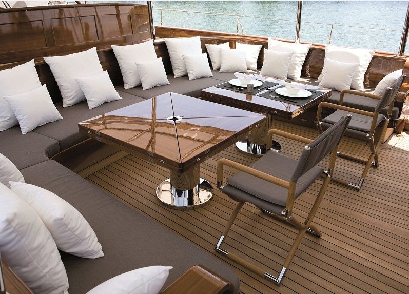 ✓ 3. Deniz Koşullarına Dayanıklı Malzemeler Kaplamalar tuzlu su, nem ve UV ışınlarına karşı yüksek dirençlidir. Yanmaz ve uzun ömürlü malzemelerle üretilmiştir, böylece yat iç mekanını yıllarca korur.